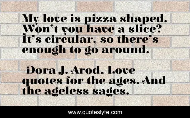 "Dora J. Arod, Love quotes for the ages. And the ageless sages. Quotes." Quoteslyfe.com, 2025. Mon. 08 Dec. 2025. <https://www.quoteslyfe.com/quote/My-love-is-pizza-shaped-Won-t-965>.