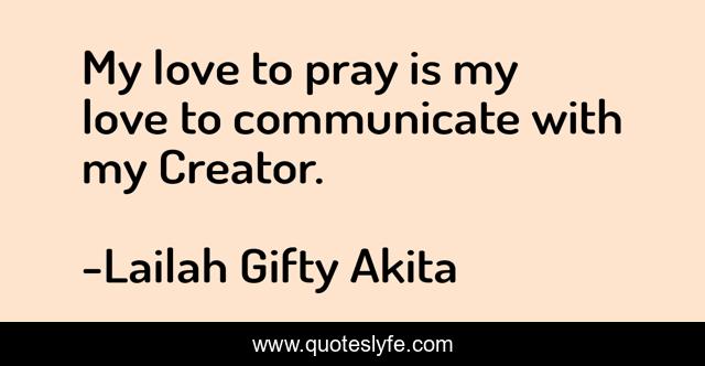 This page presents the quote "My love to pray is my love to communicate with my Creator.". Author of this quote is Lailah Gifty Akita. This quote is about pray, god, christian-life,.