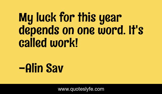 This page presents the quote "My luck for this year depends on one word. It's called work!". Author of this quote is Alin Sav. This quote is about positive, confidence, motivational, optimistic,.