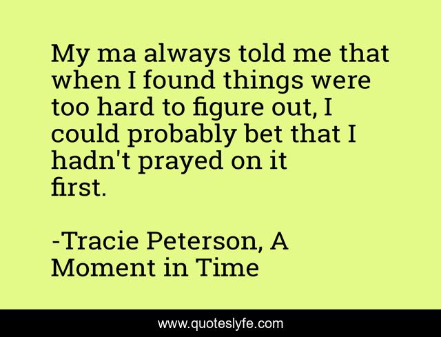 This page presents the quote "My ma always told me that when I found things were too hard to figure out, I could probably bet that I hadn't prayed on it first.". Author of this quote is Tracie Peterson, A Moment in Time. .