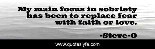 This page presents the quote "My main focus in sobriety has been to replace fear with faith or love.". Author of this quote is Steve-O. This quote is about faith, love, focus, affection,.