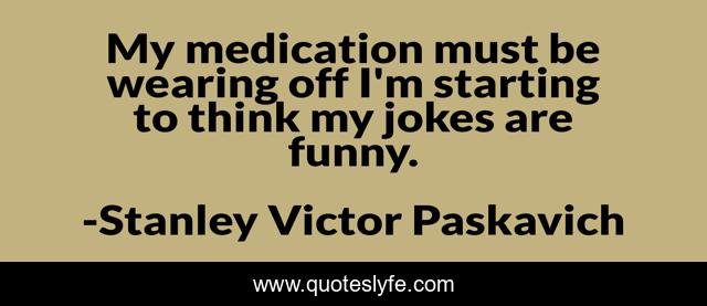 This page presents the quote "My medication must be wearing off I'm starting to think my jokes are funny.". Author of this quote is Stanley Victor Paskavich. .