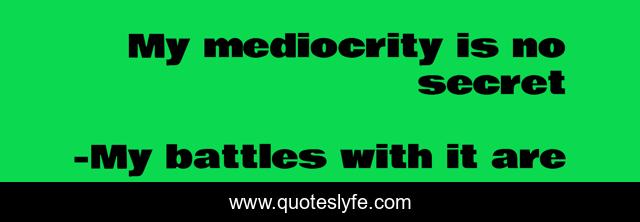"My battles with it are Quotes." Quoteslyfe.com, 2025. Fri. 05 Dec. 2025. <https://www.quoteslyfe.com/quote/My-mediocrity-is-no-secret-141839>.