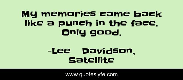 This page presents the quote "My memories came back like a punch in the face. Only good.". Author of this quote is Lee Davidson, Satellite. This quote is about humor, angels, fiction, fantasy, fantasy-ya, young-adult,.