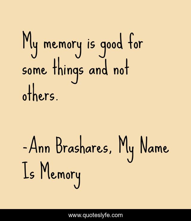 "Ann Brashares, My Name Is Memory Quotes." Quoteslyfe.com, 2025. Fri. 05 Dec. 2025. <https://www.quoteslyfe.com/quote/My-memory-is-good-for-some-things-133374>.