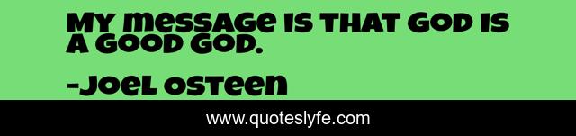 This page presents the quote "My message is that God is a good God.". Author of this quote is Joel Osteen. This quote is about message, good,.