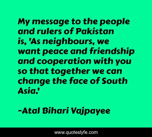 "Atal Bihari Vajpayee Quotes." Quoteslyfe.com, 2025. Mon. 08 Dec. 2025. <https://www.quoteslyfe.com/quote/My-message-to-the-people-and-rulers-319055>.