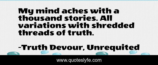 "Truth Devour, Unrequited Quotes." Quoteslyfe.com, 2025. Mon. 08 Dec. 2025. <https://www.quoteslyfe.com/quote/My-mind-aches-with-a-thousand-stories-97811>.