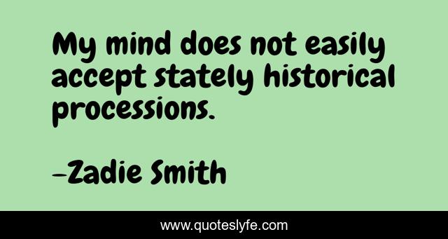 This page presents the quote "My mind does not easily accept stately historical processions.". Author of this quote is Zadie Smith. This quote is about thinking, order, minds, history,.