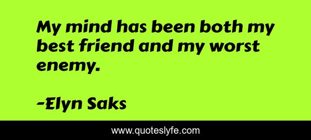 This page presents the quote "My mind has been both my best friend and my worst enemy.". Author of this quote is Elyn Saks. This quote is about best friend, mind, friend,.