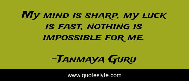This page presents the quote "My mind is sharp, my luck is fast, nothing is impossible for me.". Author of this quote is Tanmaya Guru. This quote is about impossible, mind,.