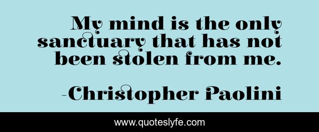 This page presents the quote "My mind is the only sanctuary that has not been stolen from me.". Author of this quote is Christopher Paolini. .