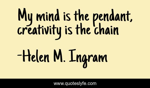 This page presents the quote "My mind is the pendant, creativity is the chain". Author of this quote is Helen M. Ingram. This quote is about creativity, inspiratinal, creative-people,.