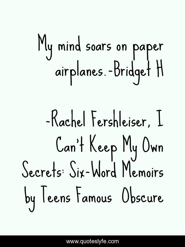 "Rachel Fershleiser, I Can't Keep My Own Secrets: Six-Word Memoirs by Teens Famous Obscure Quotes." Quoteslyfe.com, 2025. Fri. 05 Dec. 2025. <https://www.quoteslyfe.com/quote/My-mind-soars-on-paper-airplanes-Bridget-87601>.
