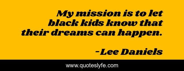 This page presents the quote "My mission is to let black kids know that their dreams can happen.". Author of this quote is Lee Daniels. This quote is about black, mission,.