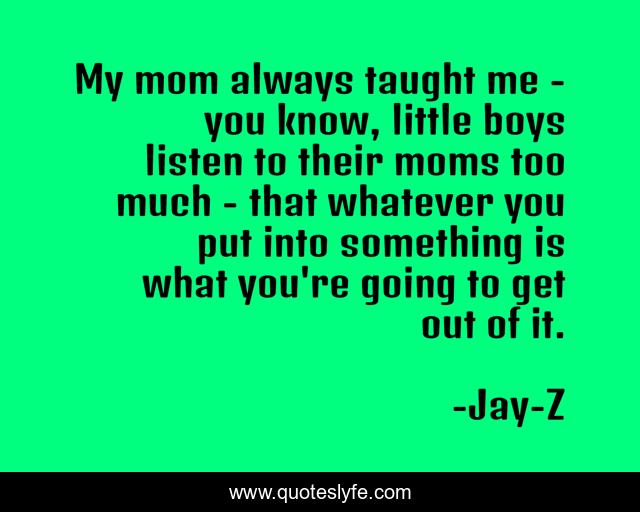 This page presents the quote "My mom always taught me - you know, little boys listen to their moms too much - that whatever you put into something is what you're going to get out of it.". Author of this quote is Jay-Z. .