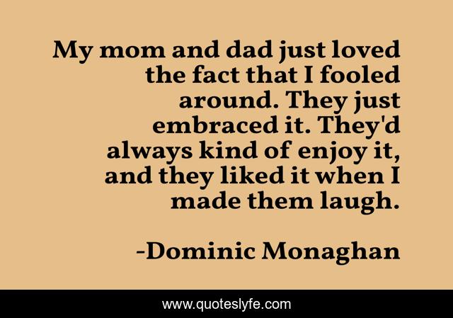 This page presents the quote "My mom and dad just loved the fact that I fooled around. They just embraced it. They'd always kind of enjoy it, and they liked it when I made them laugh.". Author of this quote is Dominic Monaghan. This quote is about enjoy, loved, laugh,.
