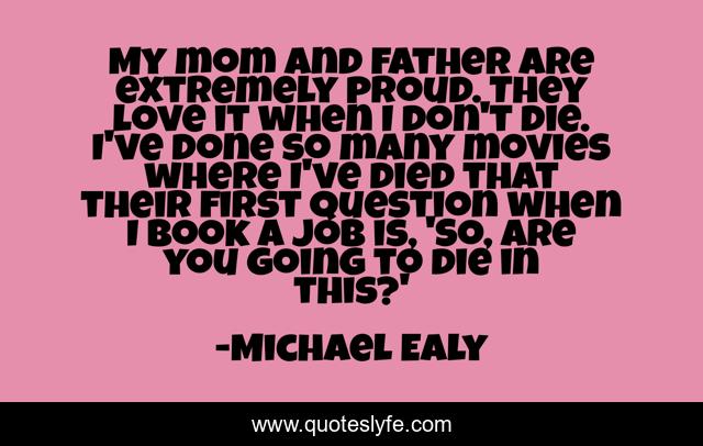 This page presents the quote "My mom and father are extremely proud. They love it when I don't die. I've done so many movies where I've died that their first question when I book a job is, 'So, are you going to die in this?'". Author of this quote is Michael Ealy. This quote is about love, father, mom, affection,.