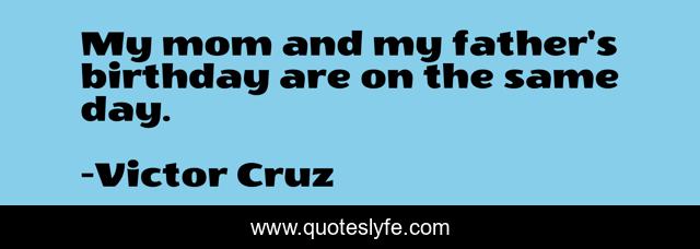 This page presents the quote "My mom and my father's birthday are on the same day.". Author of this quote is Victor Cruz. This quote is about father, day, mom,.