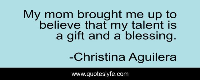 This page presents the quote "My mom brought me up to believe that my talent is a gift and a blessing.". Author of this quote is Christina Aguilera. This quote is about me, believe, gift,.