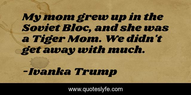 This page presents the quote "My mom grew up in the Soviet Bloc, and she was a Tiger Mom. We didn't get away with much.". Author of this quote is Ivanka Trump. This quote is about tiger, soviet, she,.