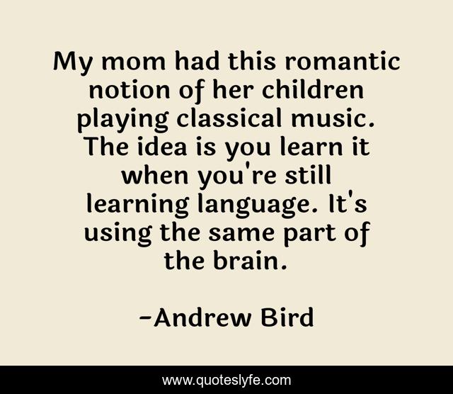 This page presents the quote "My mom had this romantic notion of her children playing classical music. The idea is you learn it when you're still learning language. It's using the same part of the brain.". Author of this quote is Andrew Bird. This quote is about music, children, learning,.