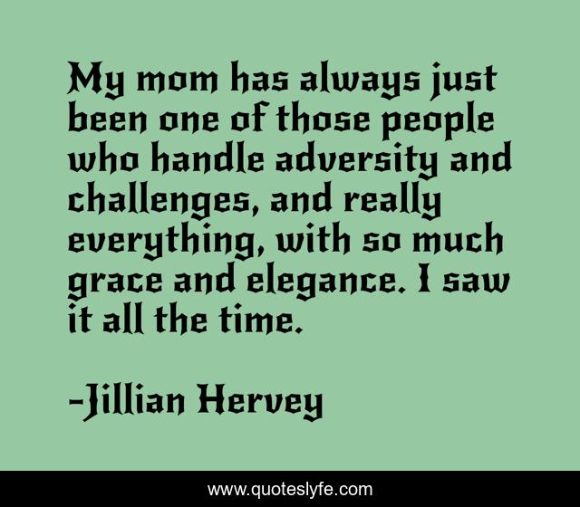 This page presents the quote "My mom has always just been one of those people who handle adversity and challenges, and really everything, with so much grace and elegance. I saw it all the time.". Author of this quote is Jillian Hervey. This quote is about challenges, adversity, time,.