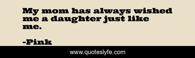 This page presents the quote "My mom has always wished me a daughter just like me.". Author of this quote is Pink. This quote is about me, always, daughter,.
