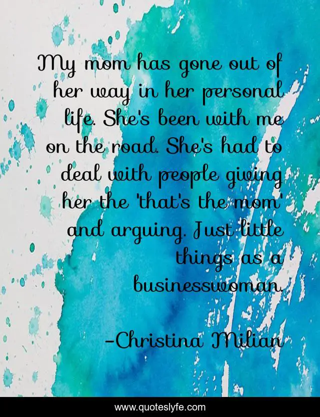 This page presents the quote "My mom has gone out of her way in her personal life. She's been with me on the road. She's had to deal with people giving her the 'that's the mom' and arguing. Just little things as a businesswoman.". Author of this quote is Christina Milian. This quote is about life, little things, road,.
