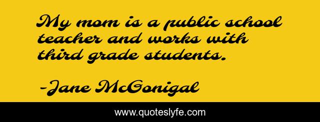 This page presents the quote "My mom is a public school teacher and works with third grade students.". Author of this quote is Jane McGonigal. This quote is about students, school, mom,.