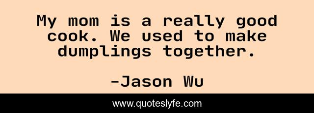 This page presents the quote "My mom is a really good cook. We used to make dumplings together.". Author of this quote is Jason Wu. This quote is about cook, good, together,.