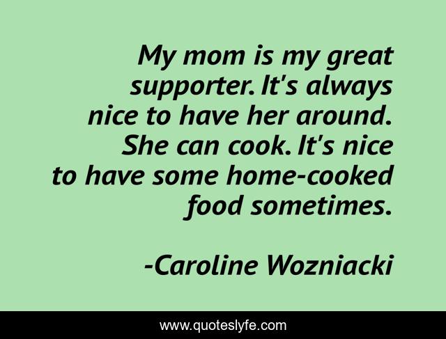 This page presents the quote "My mom is my great supporter. It's always nice to have her around. She can cook. It's nice to have some home-cooked food sometimes.". Author of this quote is Caroline Wozniacki. This quote is about food, great, nice,.