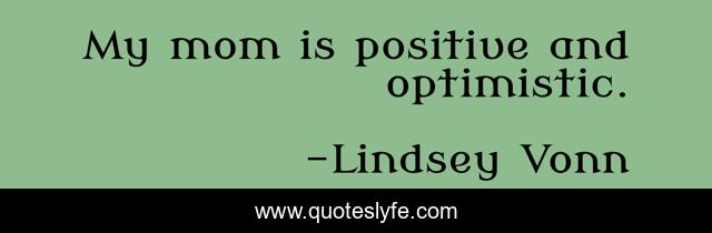 This page presents the quote "My mom is positive and optimistic.". Author of this quote is Lindsey Vonn. This quote is about optimistic, mom,.