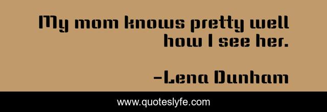 This page presents the quote "My mom knows pretty well how I see her.". Author of this quote is Lena Dunham. This quote is about see, well, her,.