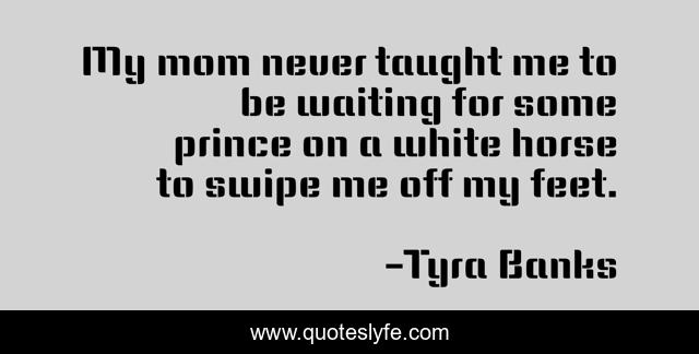 This page presents the quote "My mom never taught me to be waiting for some prince on a white horse to swipe me off my feet.". Author of this quote is Tyra Banks. This quote is about me, waiting, horse,.