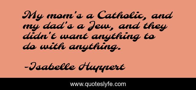 This page presents the quote "My mom's a Catholic, and my dad's a Jew, and they didn't want anything to do with anything.". Author of this quote is Isabelle Huppert. This quote is about mom, anything,.