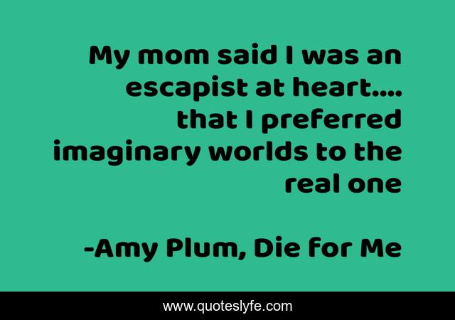 "Amy Plum, Die for Me Quotes." Quoteslyfe.com, 2025. Sun. 07 Dec. 2025. <https://www.quoteslyfe.com/quote/My-mom-said-I-was-an-escapist-9357>.