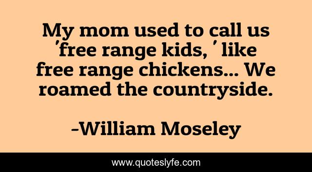This page presents the quote "My mom used to call us 'free range kids, ' like free range chickens... We roamed the countryside.". Author of this quote is William Moseley. This quote is about kids, chickens, free,.