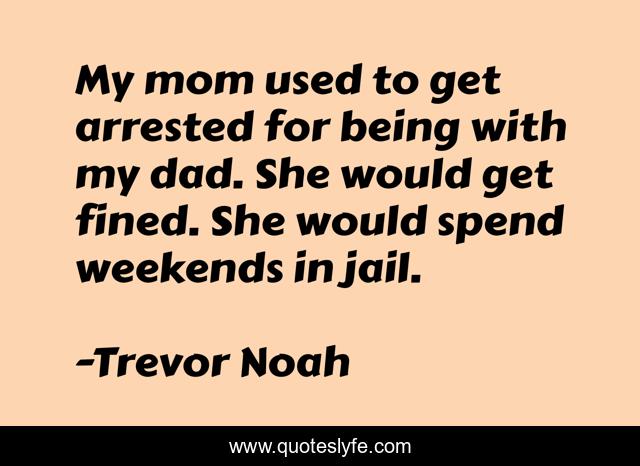 This page presents the quote "My mom used to get arrested for being with my dad. She would get fined. She would spend weekends in jail.". Author of this quote is Trevor Noah. This quote is about being, jail, she,.