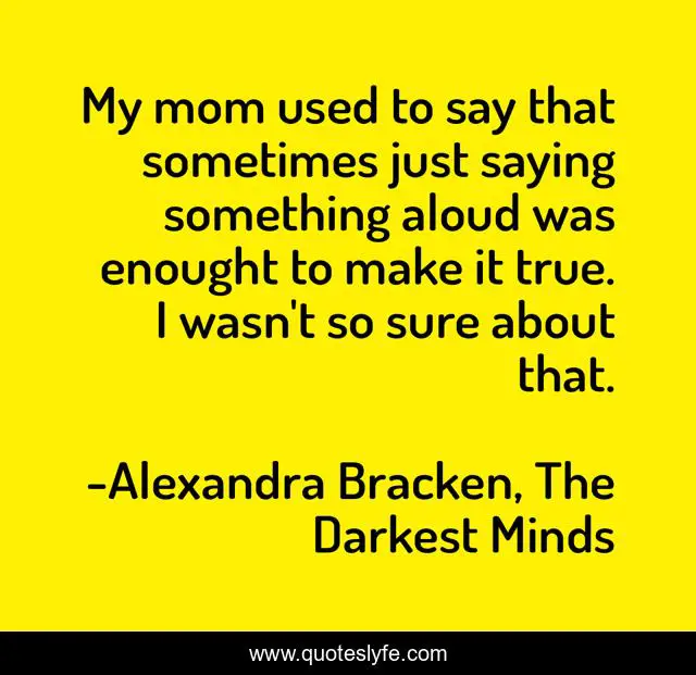 This page presents the quote "My mom used to say that sometimes just saying something aloud was enought to make it true. I wasn't so sure about that.". Author of this quote is Alexandra Bracken, The Darkest Minds. .