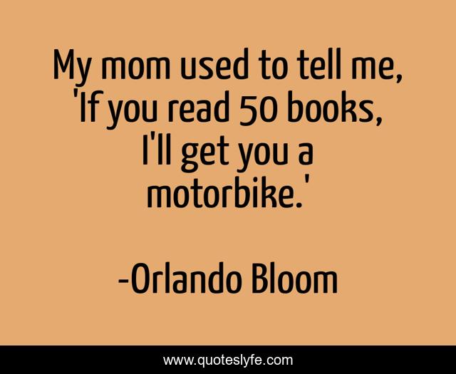This page presents the quote "My mom used to tell me, 'If you read 50 books, I'll get you a motorbike.'". Author of this quote is Orlando Bloom. .