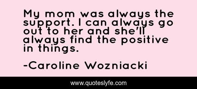 This page presents the quote "My mom was always the support. I can always go out to her and she'll always find the positive in things.". Author of this quote is Caroline Wozniacki. This quote is about support, she, mom,.