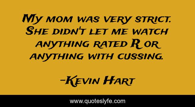 This page presents the quote "My mom was very strict. She didn't let me watch anything rated R or anything with cussing.". Author of this quote is Kevin Hart. This quote is about me, she, anything,.