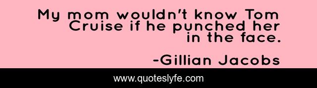 This page presents the quote "My mom wouldn't know Tom Cruise if he punched her in the face.". Author of this quote is Gillian Jacobs. This quote is about her, face,.
