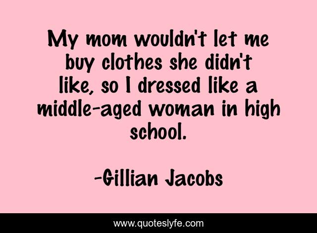 This page presents the quote "My mom wouldn't let me buy clothes she didn't like, so I dressed like a middle-aged woman in high school.". Author of this quote is Gillian Jacobs. This quote is about me, school, woman,.