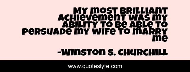 This page presents the quote "My most brilliant achievement was my ability to be able to persuade my wife to marry me". Author of this quote is Winston S. Churchill. This quote is about marriage, marriage-proposal,.