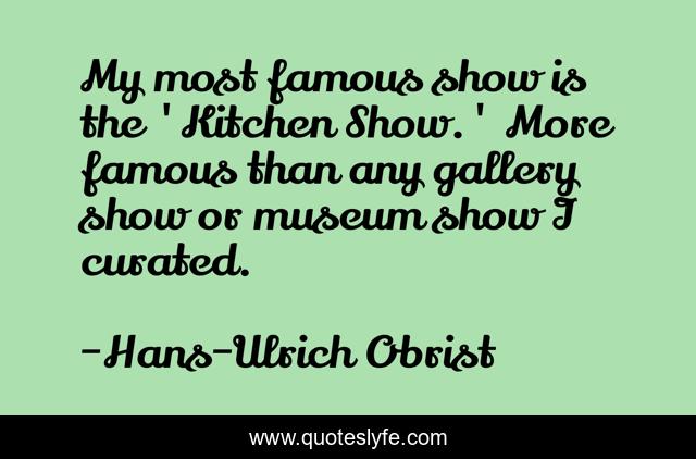 "Hans-Ulrich Obrist Quotes." Quoteslyfe.com, 2025. Mon. 08 Dec. 2025. <https://www.quoteslyfe.com/quote/My-most-famous-show-is-the-Kitchen-291920>.