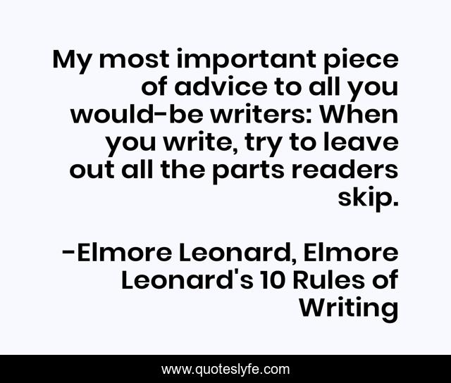 "Elmore Leonard, Elmore Leonard's 10 Rules of Writing Quotes." Quoteslyfe.com, 2025. Fri. 05 Dec. 2025. <https://www.quoteslyfe.com/quote/My-most-important-piece-of-advice-to-26889>.