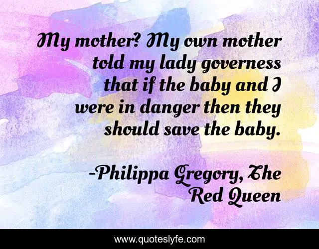This page presents the quote "My mother? My own mother told my lady governess that if the baby and I were in danger then they should save the baby.". Author of this quote is Philippa Gregory, The Red Queen. This quote is about life, personhood, history, childbirth, women,.