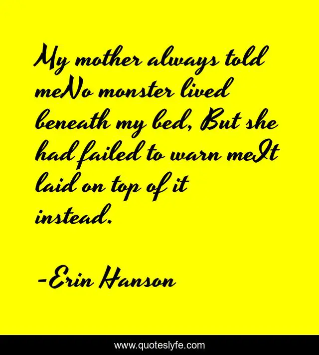"Erin Hanson Quotes." Quoteslyfe.com, 2025. Sat. 06 Dec. 2025. <https://www.quoteslyfe.com/quote/My-mother-always-told-meNo-monster-lived-141501>.